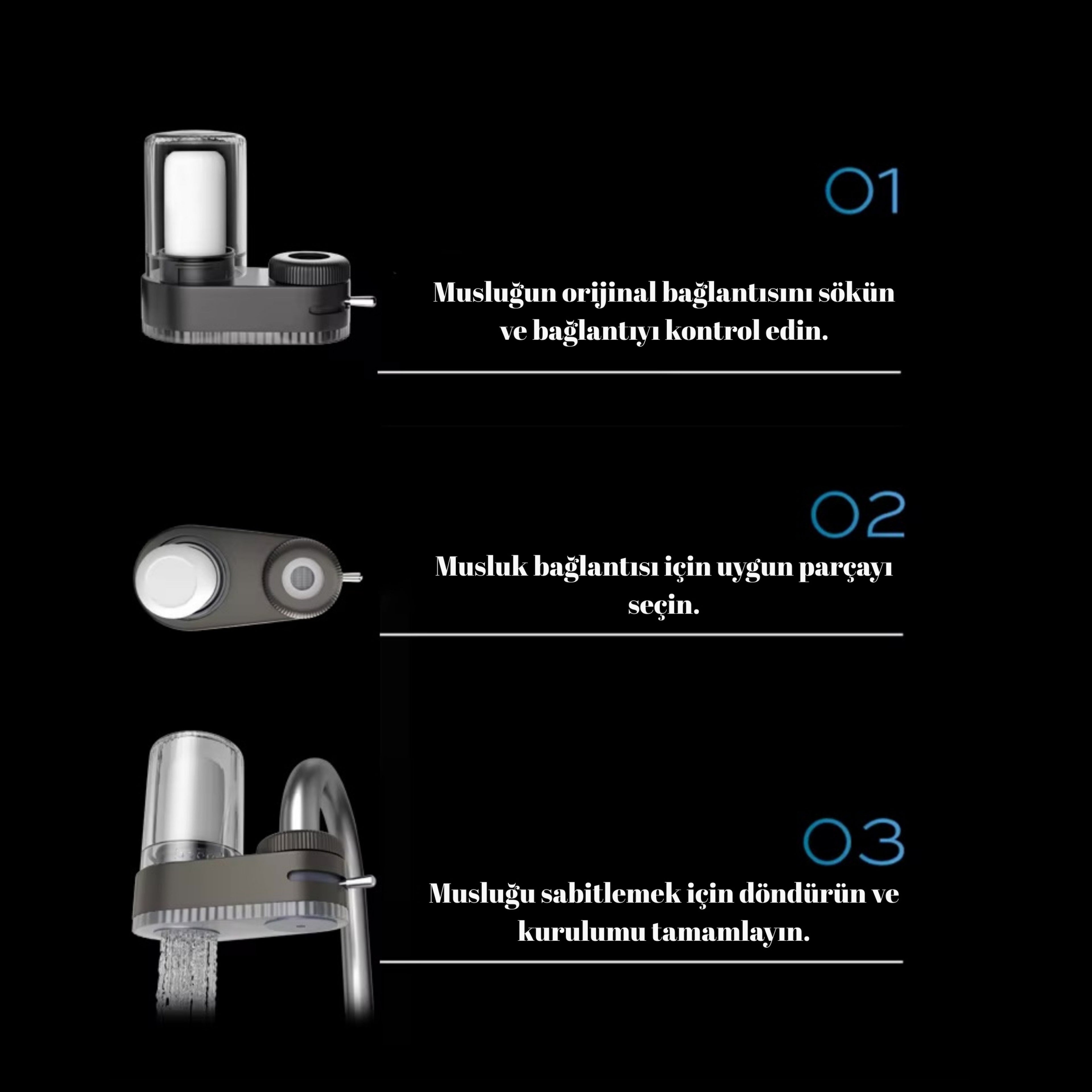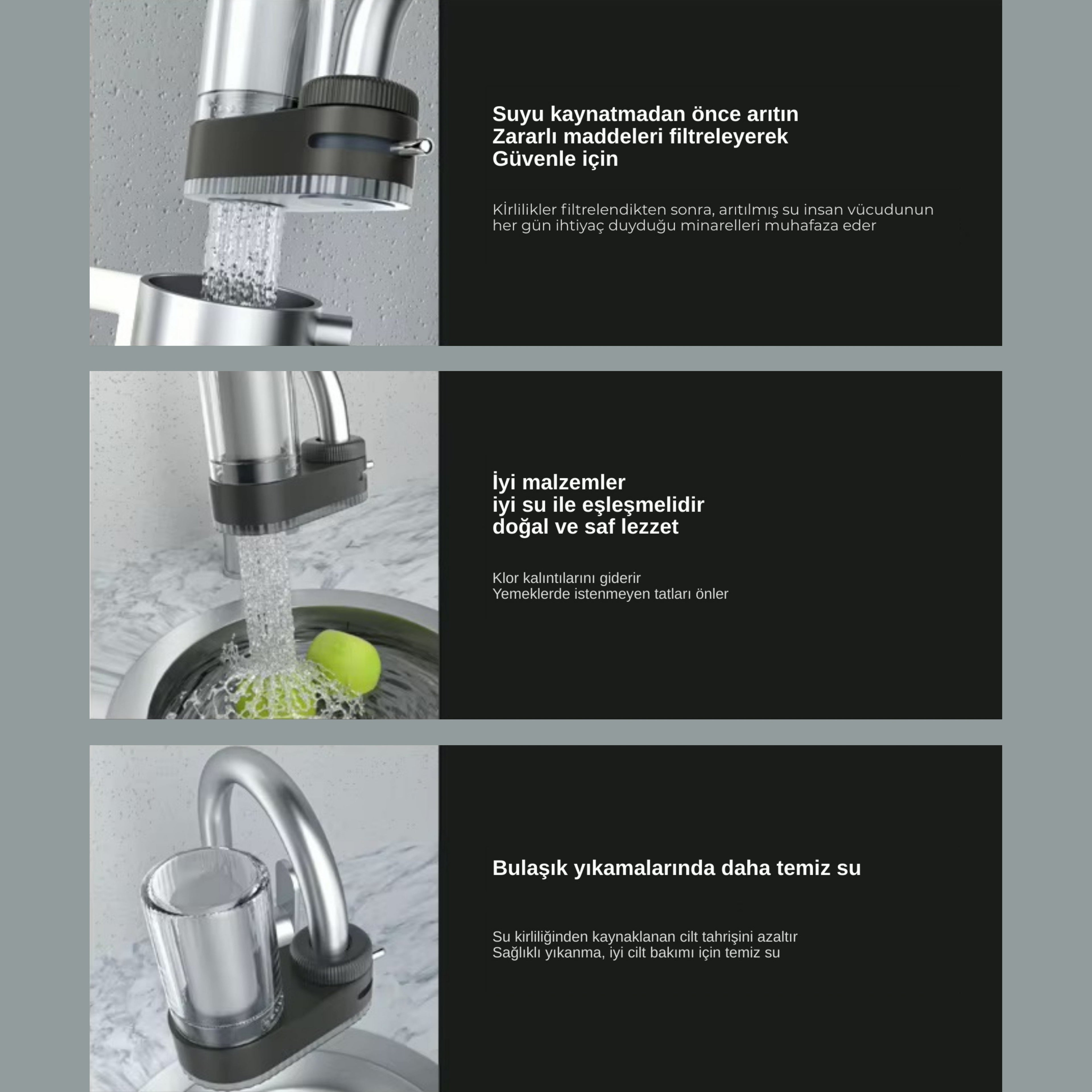 Sağlıklı ve Temiz Su – Şebeke suyundaki kireç, klor ve zararlı maddeleri filtreleyerek günlük kullanım için güvenli ve berrak içme suyu sunar.